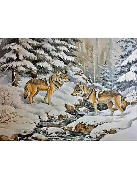 Алмазная мозаика без подрамника «Волки зимой» 90x70 см, 50 цветов