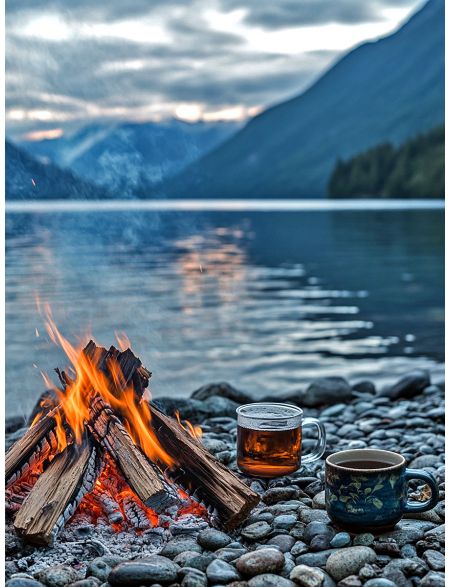 Алмазная мозаика без подрамника «Костер у воды» 90x70 см