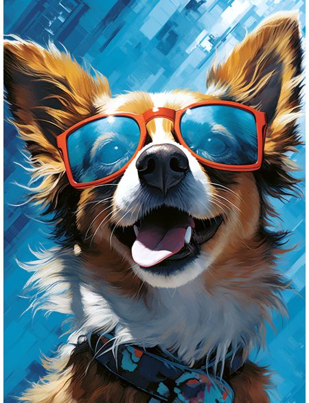 Алмазная мозаика без подрамника «Собака в очках» 90x70 см, 50 цветов