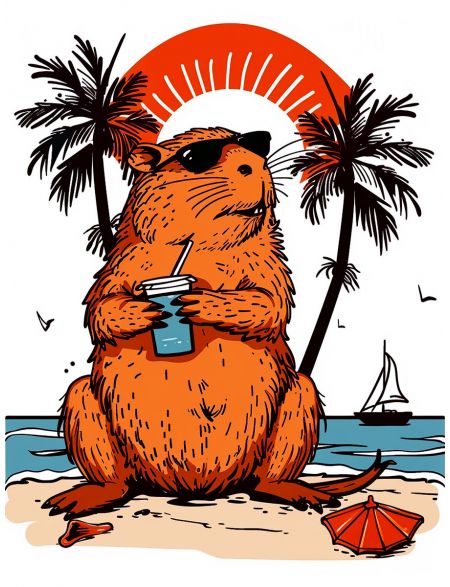 Алмазная мозаика без подрамника «Капибара на отдыхе» 90x70 см, 50 цветов