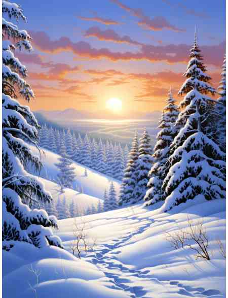 Алмазная мозаика без подрамника «Зимний закат» 90x70 см, 50 цветов