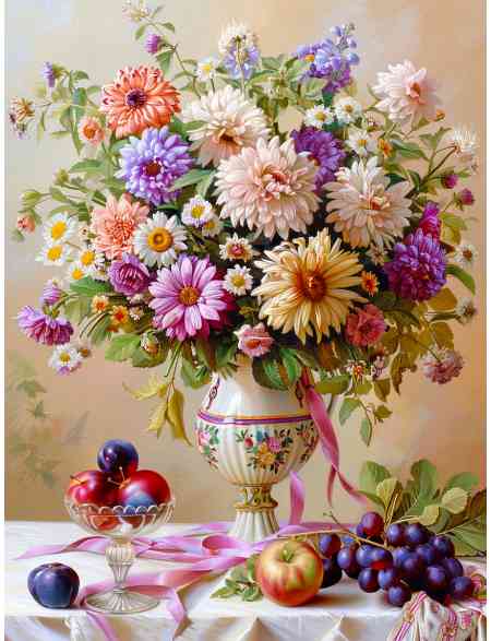 Алмазная мозаика без подрамника «Натюрморт» 90x70 см, 50 цветов