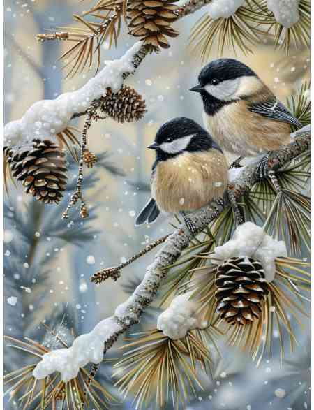 Алмазная мозаика без подрамника «Синички» 90x70 см, 47 цветов
