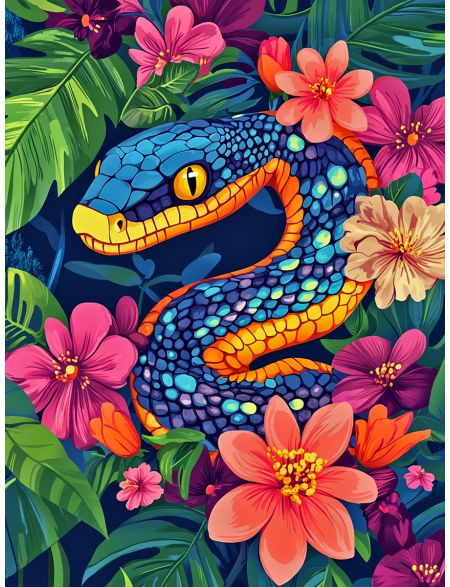 Алмазная мозаика без подрамника «Цветочная змея» 90x70 см