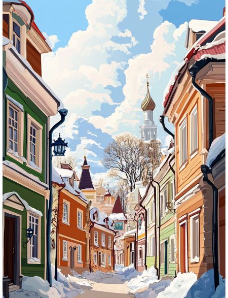 Алмазная мозаика без подрамника «Зимний городок» 90x70 см