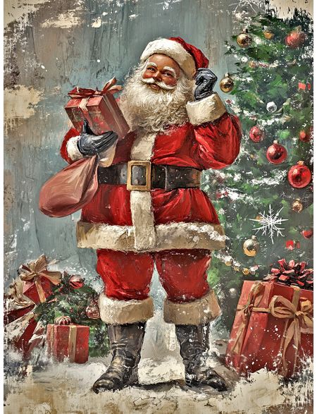 Алмазная мозаика без подрамника «Ретро Санта» 90x70 см