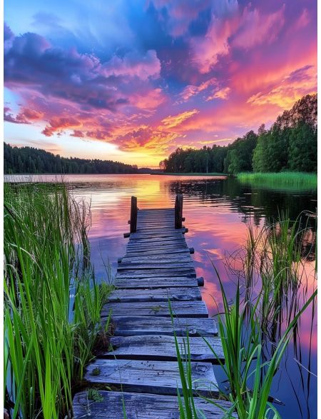 Алмазная мозаика без подрамника «Закат» 90x70 см, 50 цветов