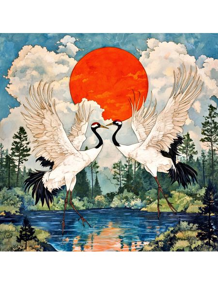 Алмазная мозаика без подрамника «Журавли» 90x90 см