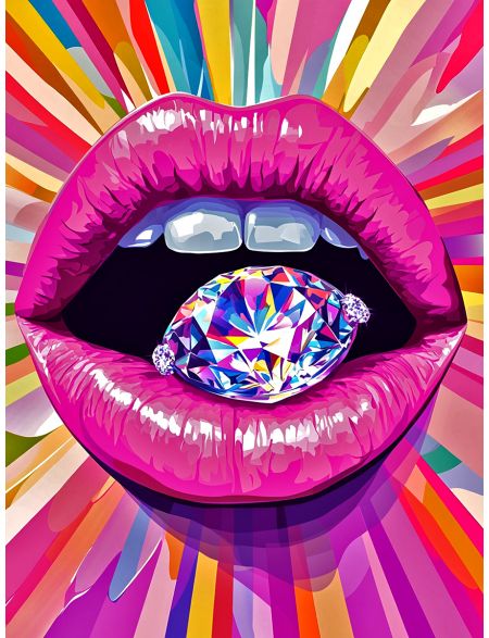 Алмазная мозаика без подрамника «Губы с алмазом» 130x100 см