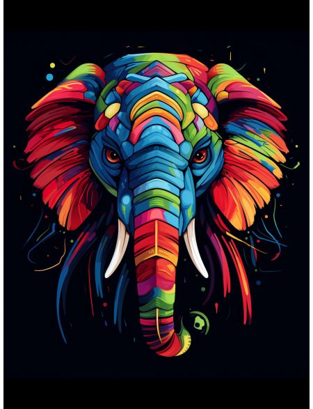 Алмазная мозаика без подрамника «Цветной слон» 130x100 см, 50 цветов
