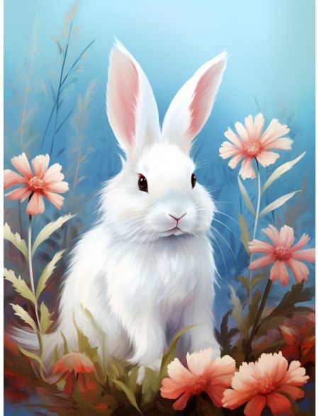 Алмазная мозаика на подрамнике «Кролик и цветочки» 50x40 см, 50 цветов