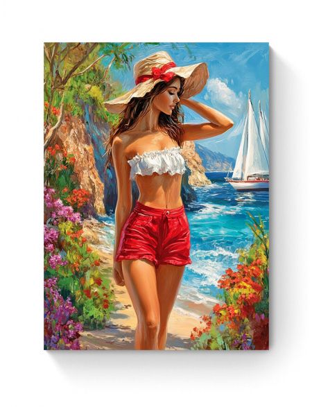 Алмазная мозаика на подрамнике «Девушка на море» 50x40 см, 49 цветов