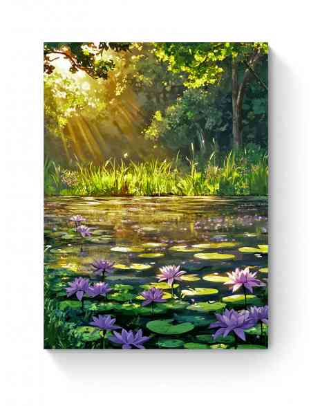 Алмазная мозаика на подрамнике «Лилии в пруду» 70x50 см