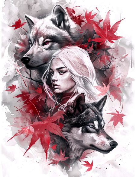 Алмазная мозаика на подрамнике «Волчья семья» 90x70 см, 48 цветов