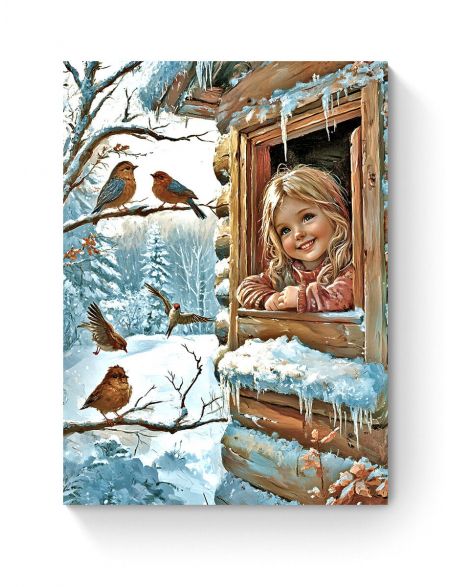 Алмазная мозаика на подрамнике «Зима в деревне» 90x70 см