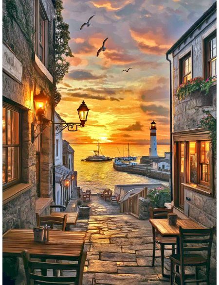 Алмазная мозаика без подрамника «Кафе у моря» 130x100 см