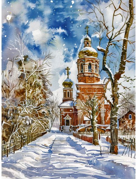 Алмазная мозаика без подрамника «Церковь зимой» 130x100 см