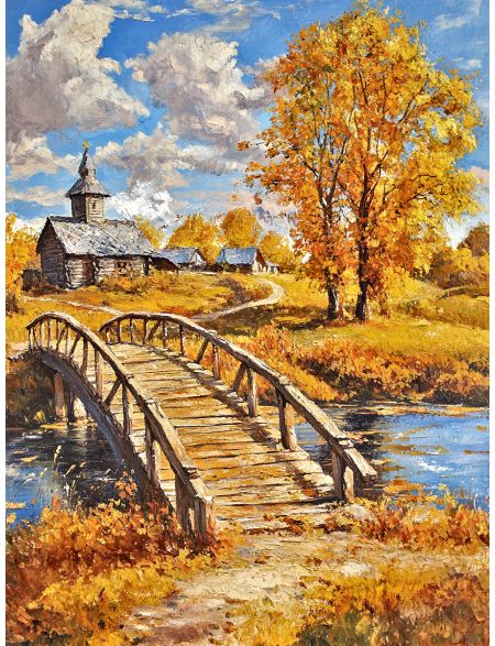 Алмазная мозаика без подрамника «Осень в деревне» 130x100 см
