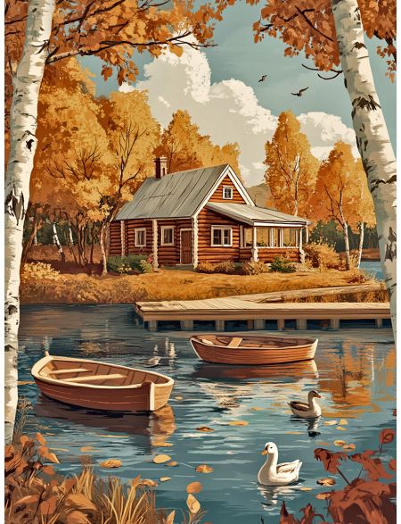 Алмазная мозаика без подрамника «Осень в деревне» 130x100 см