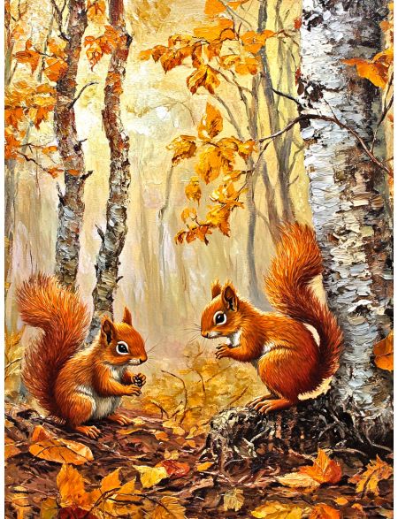 Алмазная мозаика без подрамника «Белки и осень» 130x100 см