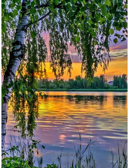 Алмазная мозаика без подрамника «Березы у реки» 130x100 см
