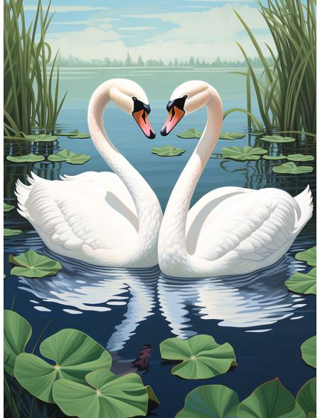 Алмазная мозаика без подрамника «Лебеди» 90x70 см, 50 цветов