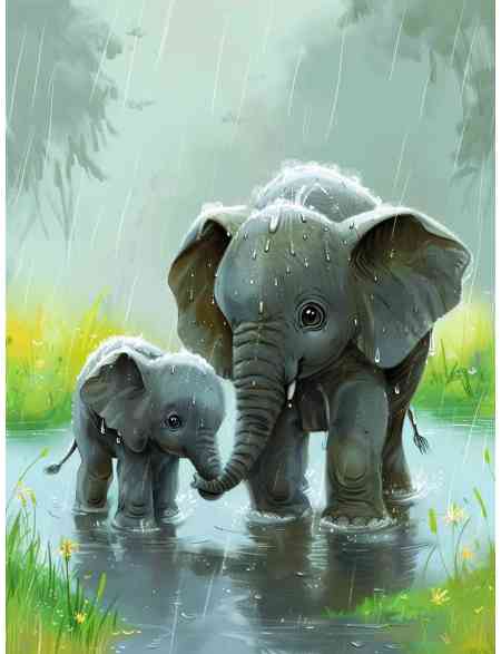 Алмазная мозаика без подрамника «Слоники» 50x40 см, 50 цветов