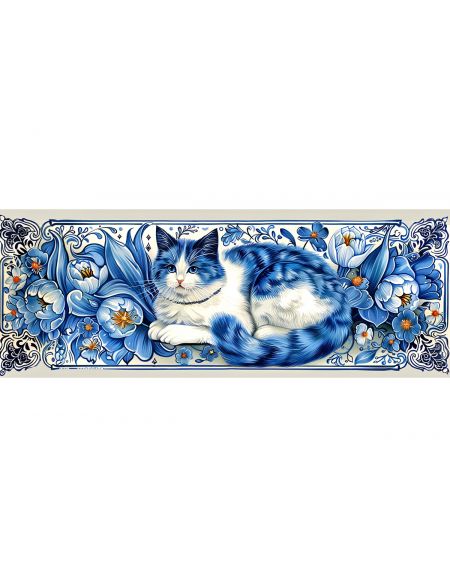Алмазная мозаика без подрамника «Кот гжель» 150x50 см