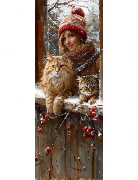 Алмазная мозаика без подрамника «Коты и собаки» 50x17 см, 43 цветов