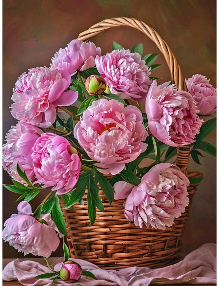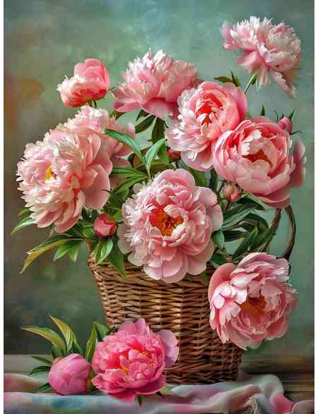Алмазная мозаика без подрамника «Пионы» 50x40 см., 50 цветов