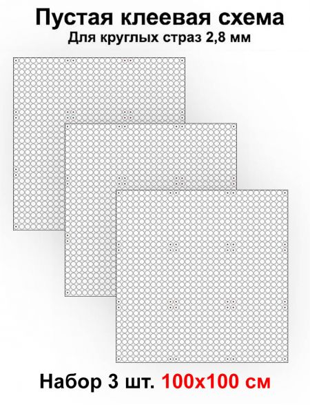 Клеевая схема для алмазной мозаики 100x100 см, 2.8 мм круглые стразы. Набор из 3 штук.