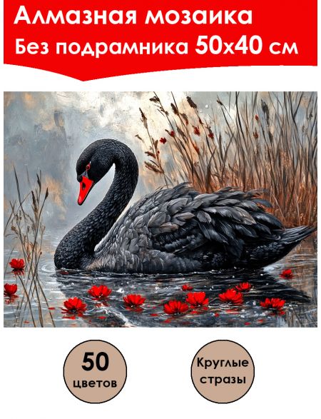 Алмазная мозаика без подрамника «Черный лебедь» 50x40 см, 50 цветов