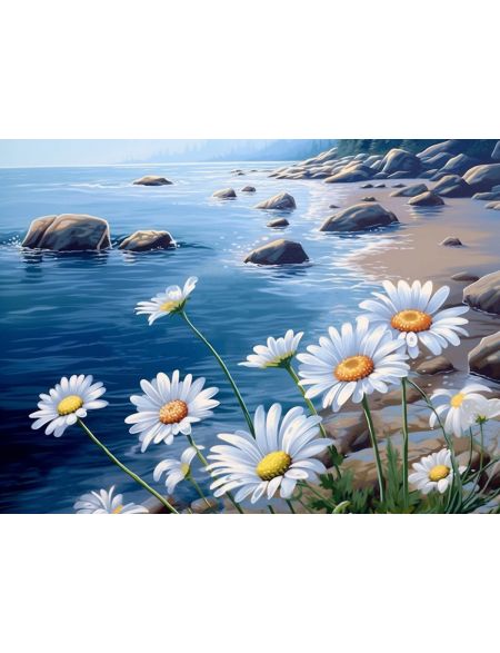 Алмазная мозаика без подрамника «Ромашки» 70x50 см, 50 цветов