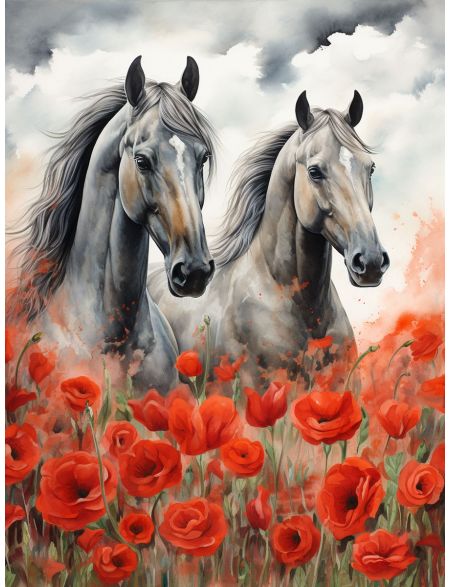 Алмазная мозаика на подрамнике «Лошади» 90x70 см, 50 цветов
