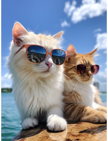 Алмазная мозаика на подрамнике «Два кота» 70x50 см, 50 цветов