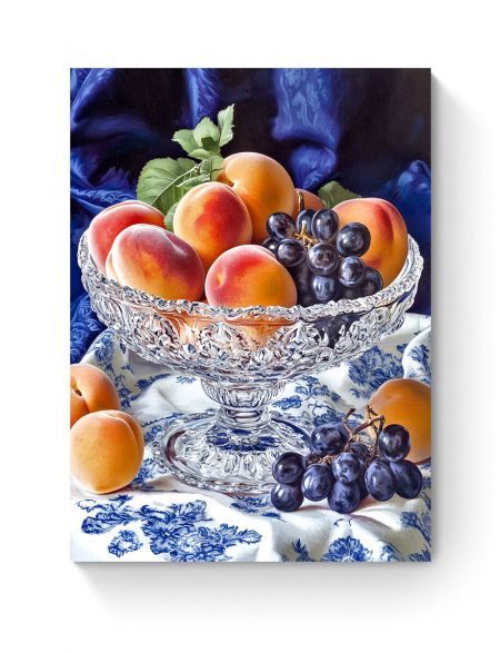 Алмазная мозаика на подрамнике «Персики в вазе» 40x30 см, 50 цветов