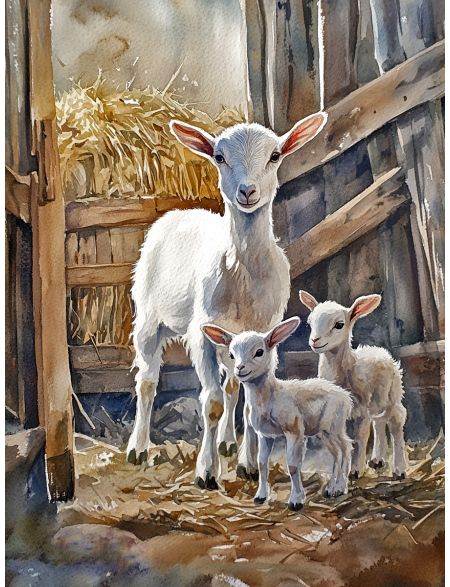 Алмазная мозаика без подрамника «Коза и козлята» 40x30 см