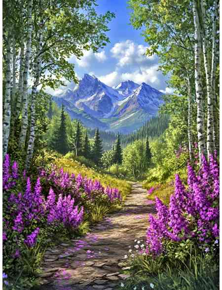 Алмазная мозаика без подрамника «Тропинка в горы» 50x40 см