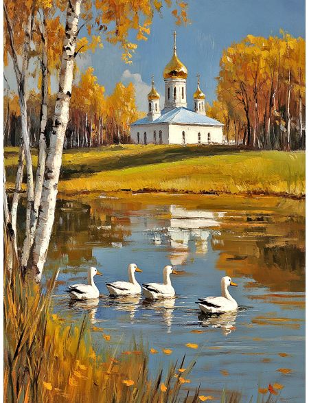 Алмазная мозаика на подрамнике «Осень в деревне» 40x30 см, 50 цветов