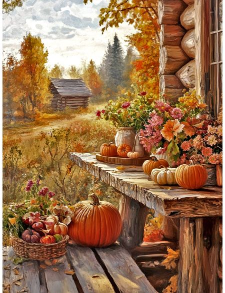 Алмазная мозаика без подрамника «Осень в деревне» 25x20 см