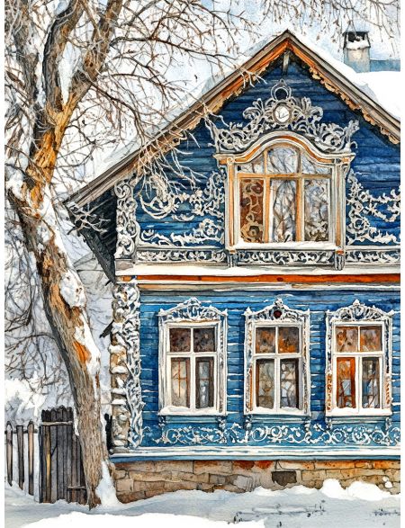 Алмазная мозаика без подрамника «Зима в деревне» 50x40 см