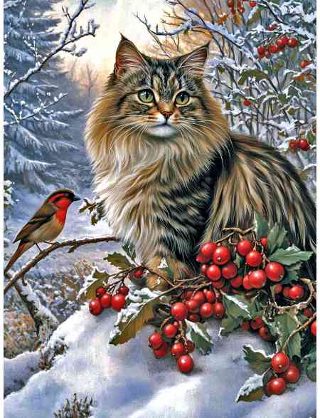 Алмазная мозаика без подрамника «Котик на ветке» 40x30 см, 47 цветов
