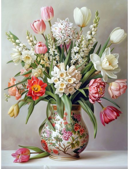 Алмазная мозаика на подрамнике «Весенний букет» 50x40 см, 49 цветов