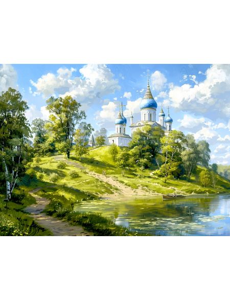Алмазная мозаика на подрамнике «Церковь» 70x50 см, 50 цветов