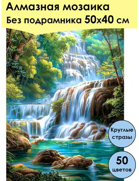 Алмазная мозаика без подрамника «Водопад» 50x40 см, 50 цветов