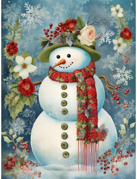 Алмазная мозаика на подрамнике «Новогодний снеговик» 40x30 см, 50 цветов