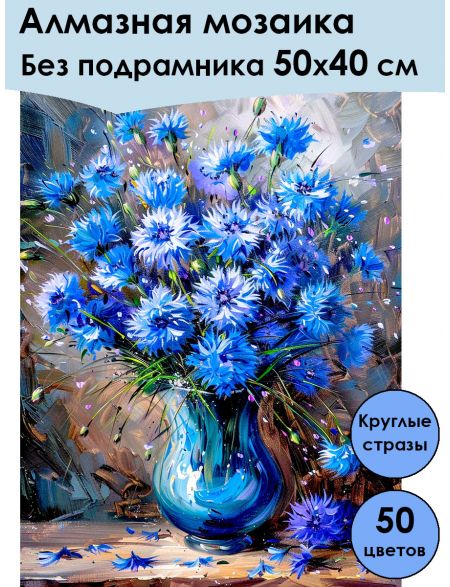 Алмазная мозаика без подрамника «Васильки» 50x40 см, 50 цветов