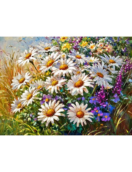 Алмазная мозаика без подрамника «Луговые цветы» 130x100 см, 50 цветов
