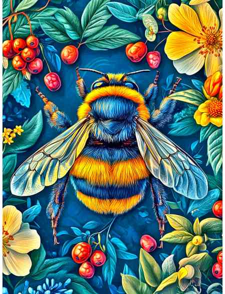 Алмазная мозаика без подрамника «Цветочный шмель» 130x100 см, 50 цветов