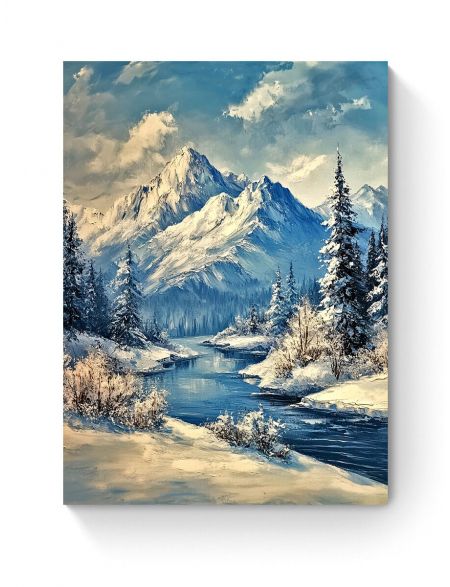 Алмазная мозаика на подрамнике «Зима в горах» 40x30 см, 47 цветов